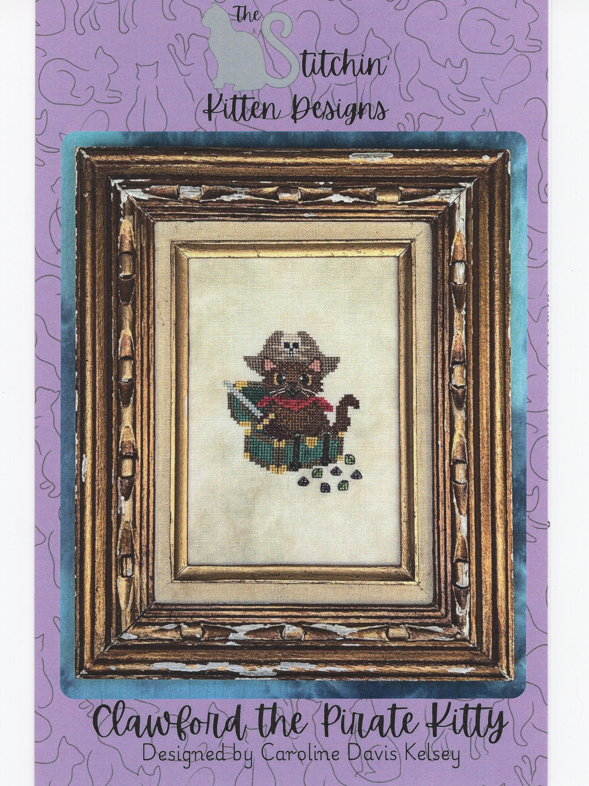 The Stitchin' Kitten Designs' pattern Clawford the Pirate Kitty was designed by Caroline Davis Kelsey.  The model was stitched on 32 count linen (2 strands over 2 threads).