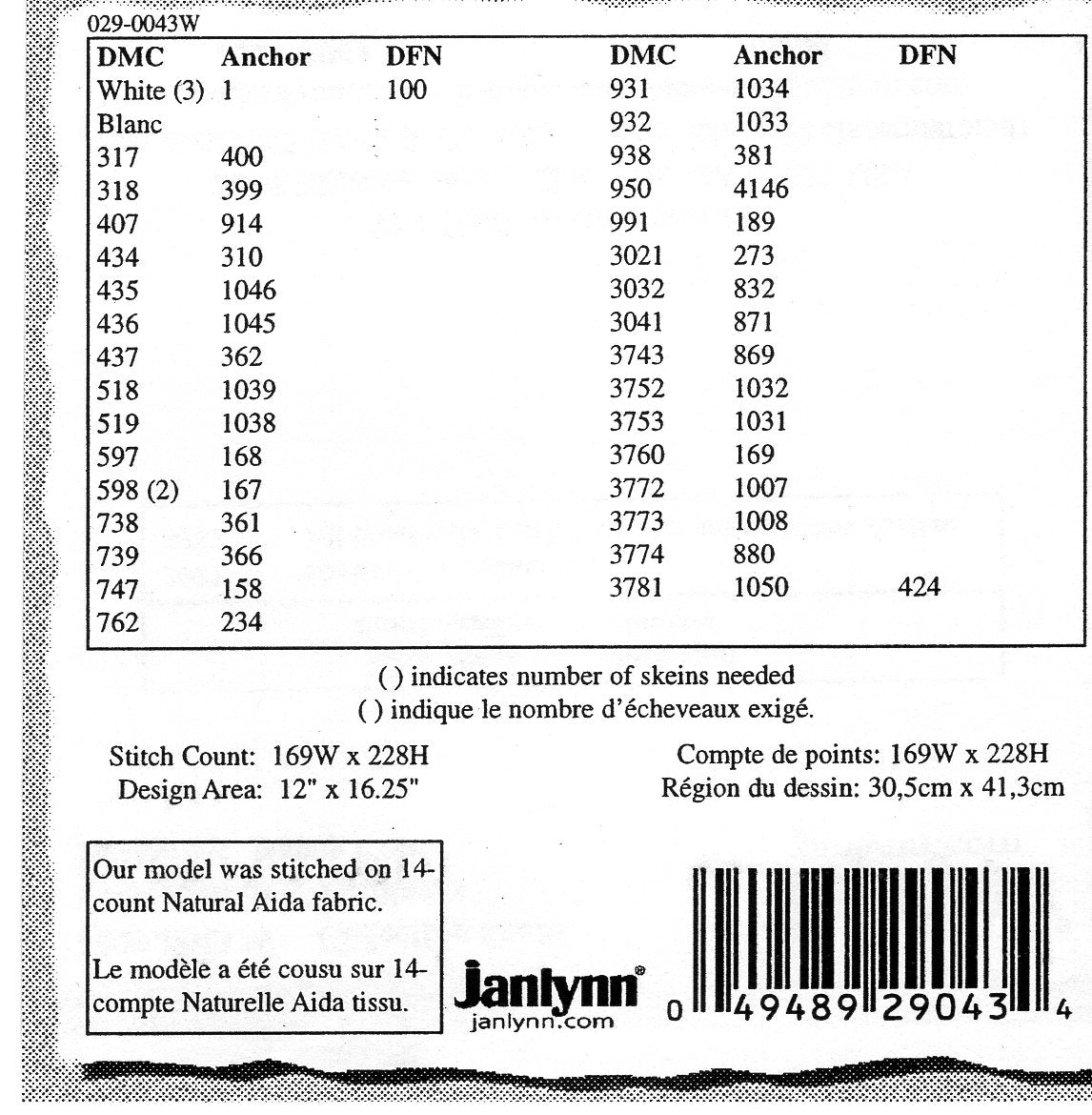 Janlynn's Collecting Shells model was stitched on 14 count Aida (2 threads over 2 strands).