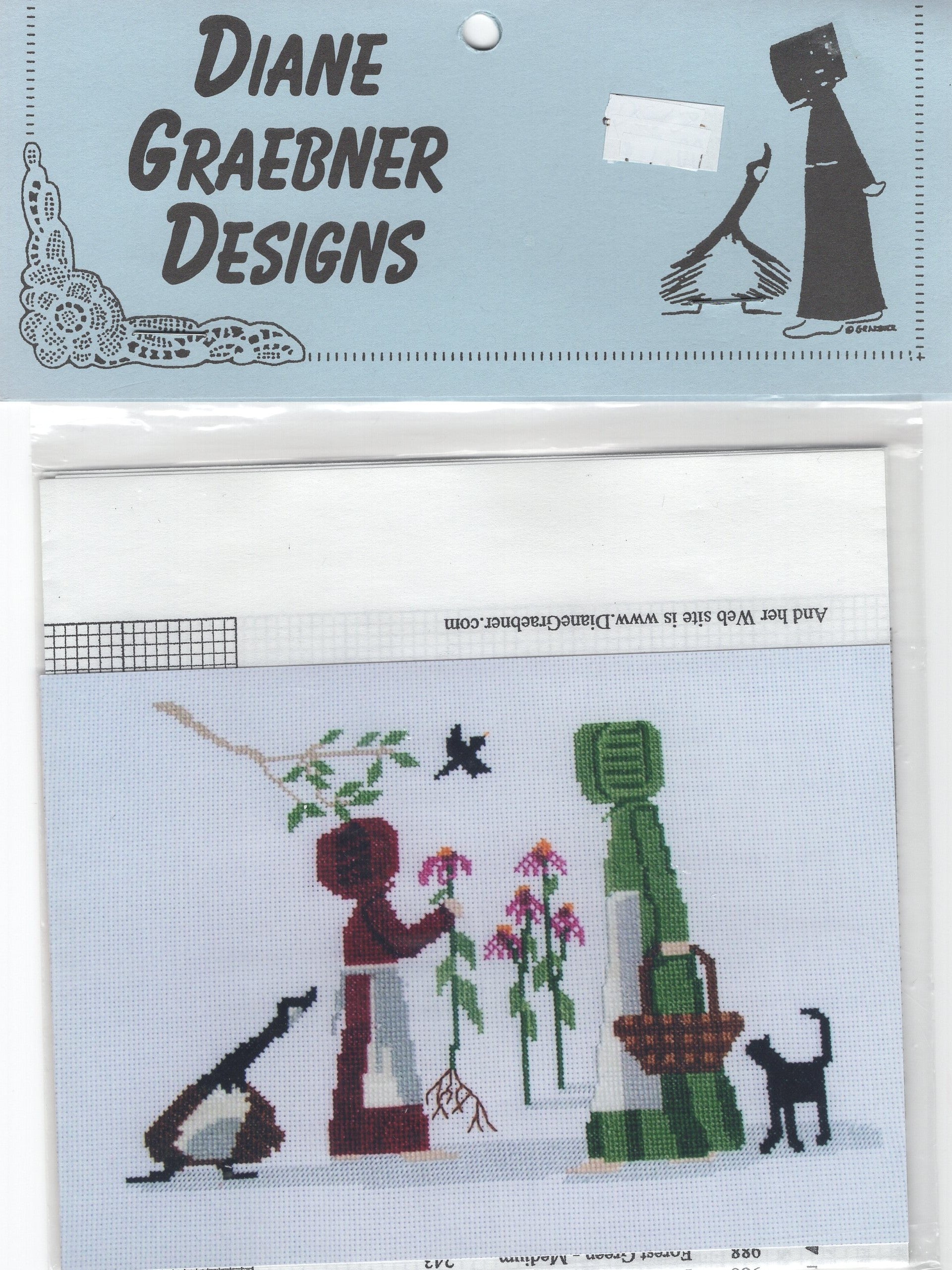 Diane Graebner Designs’ Coneflowers For You / Whoops, Roots and All was designed by Diane Graebner.  The listed recommendation for fabric is 18 count white Aida.