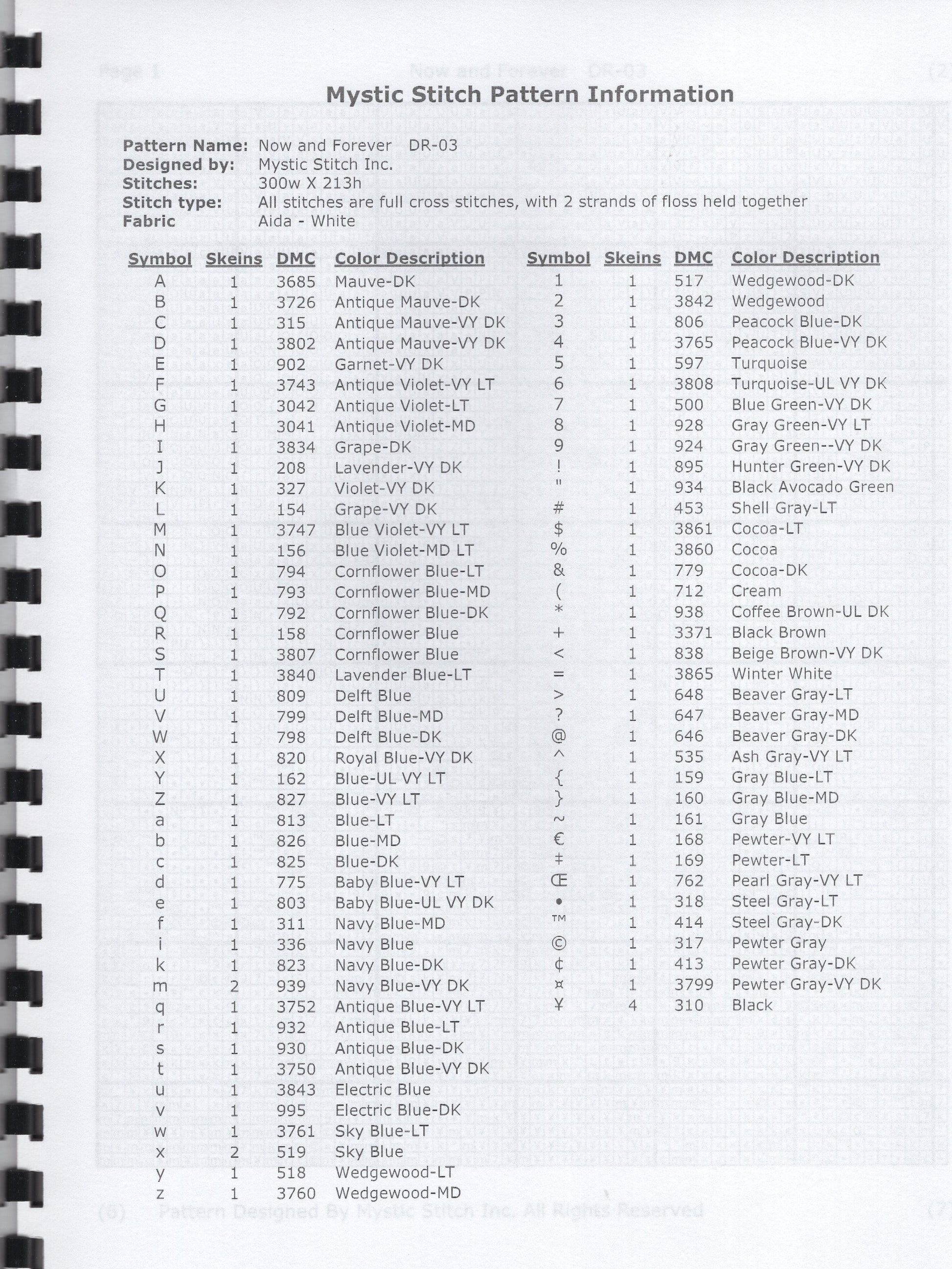 Mystic Stitch's Now & Forever was adapted to cross stitch by Kelly Morgante. It was based on a painting by Diane Romanello.