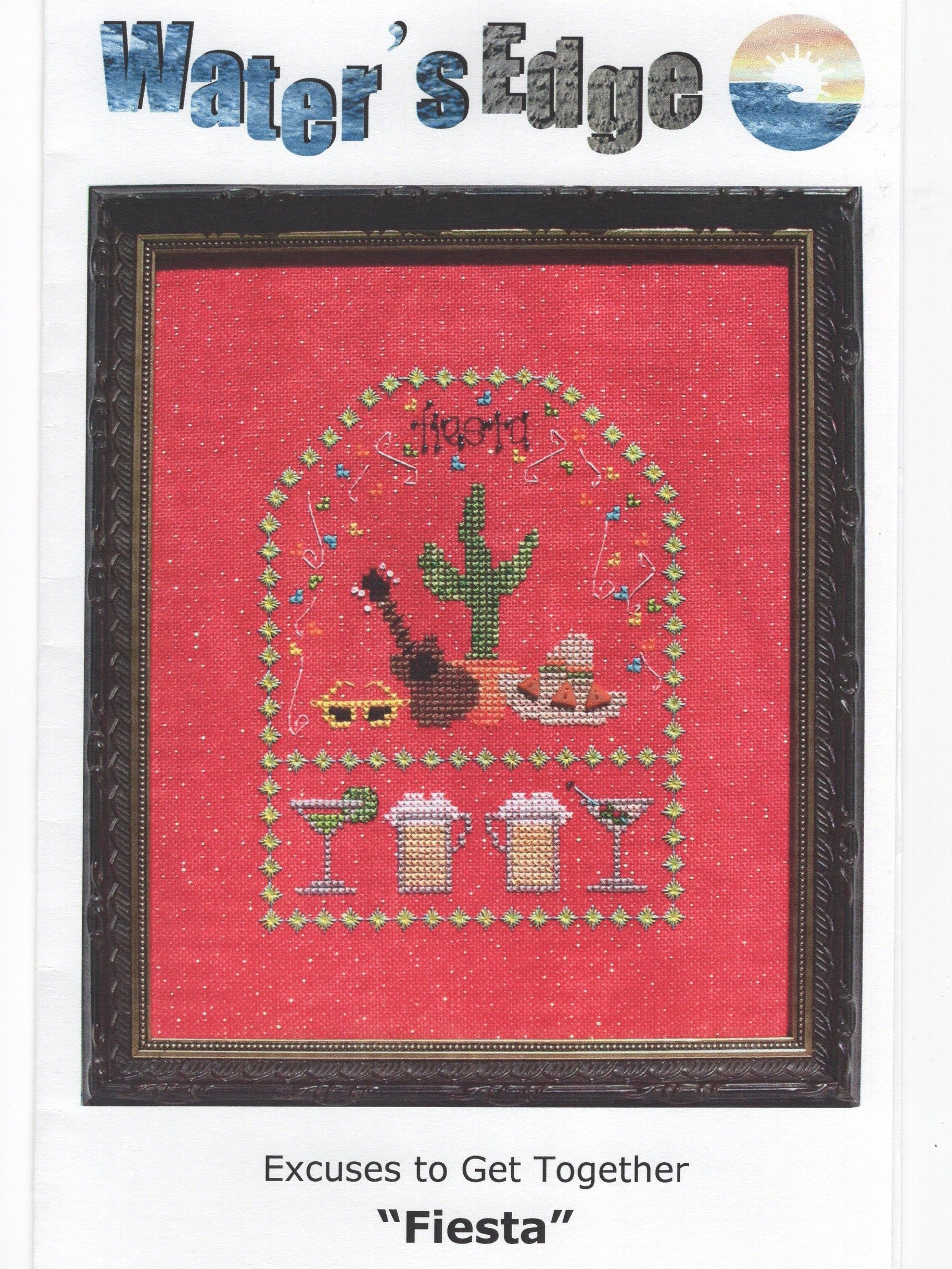 Water's Edge's Excuses to get Together, Fiesta was designed by Bobbie Marek. The model was stitched on 28 count evenweave (2 strands over 2 threads).