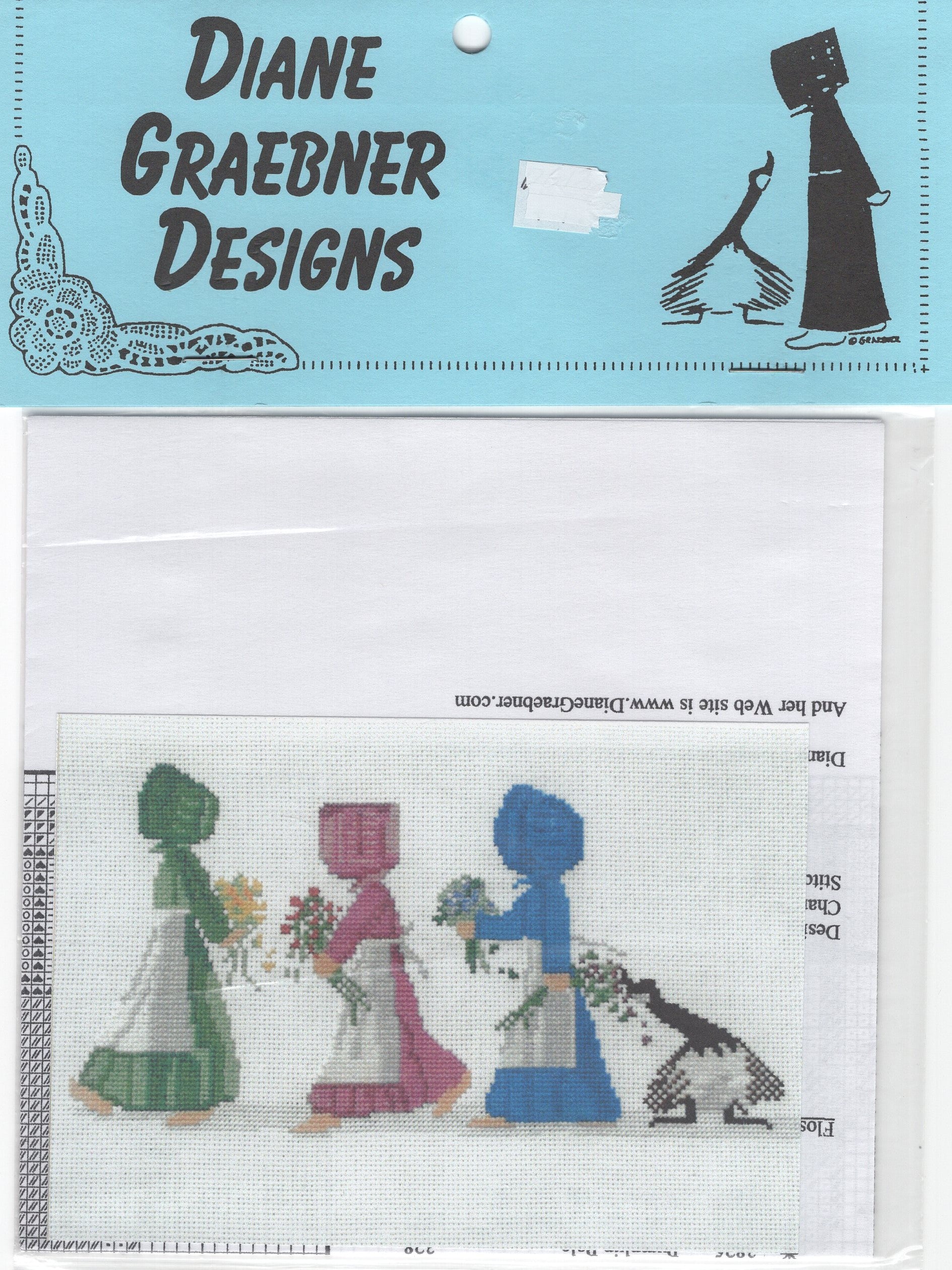 Diane Graebner Designs’ Faith, Hope & Charity was designed by Diane Graebner.  The listed recommendation for fabric is 18 count white Aida.