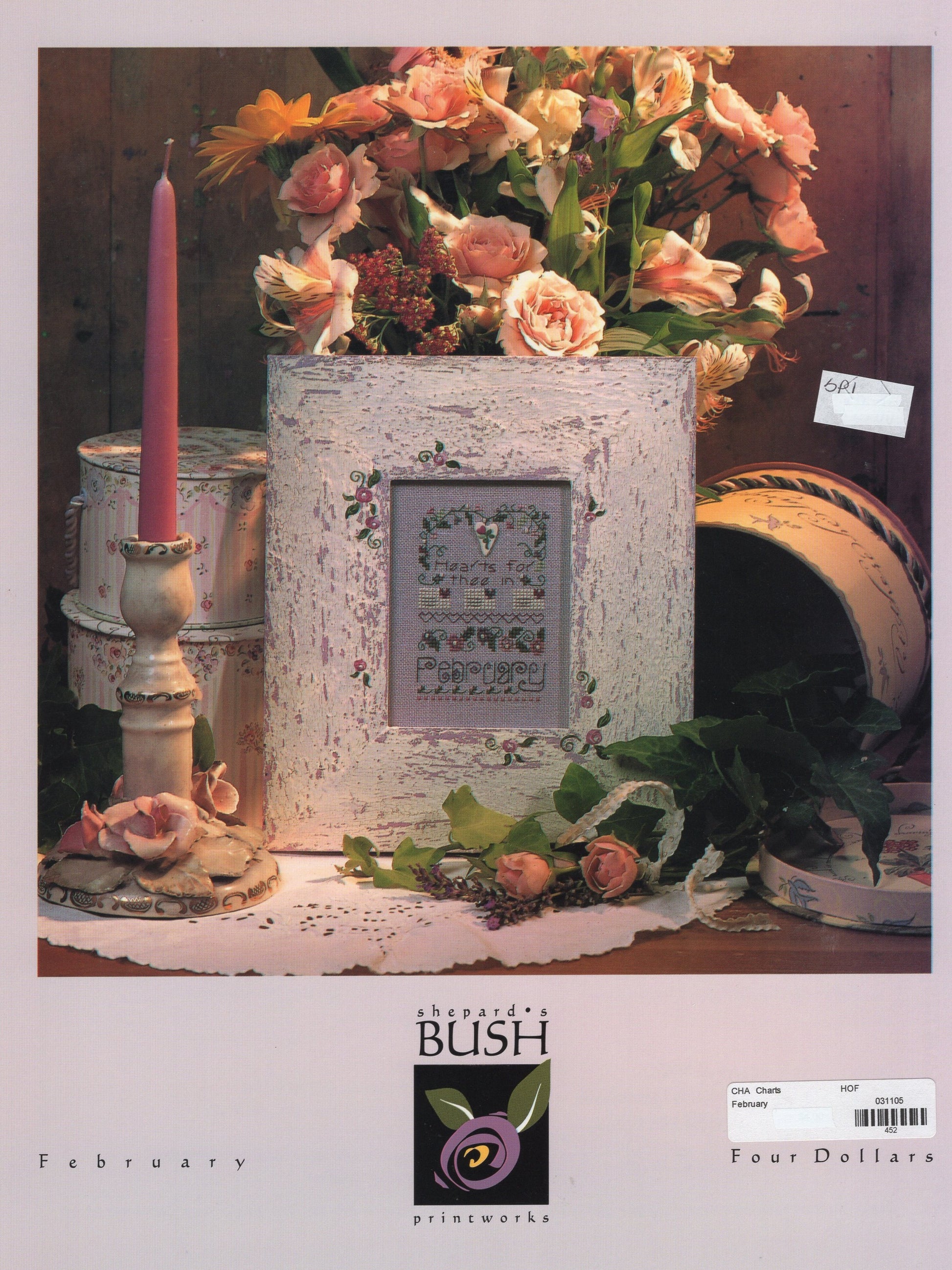 Shepherd's Bush's February from their Year in Stitches series was designed by Teri Lyn Richards. The model was stitched on 28 count linen (2 strands over 2 threads).