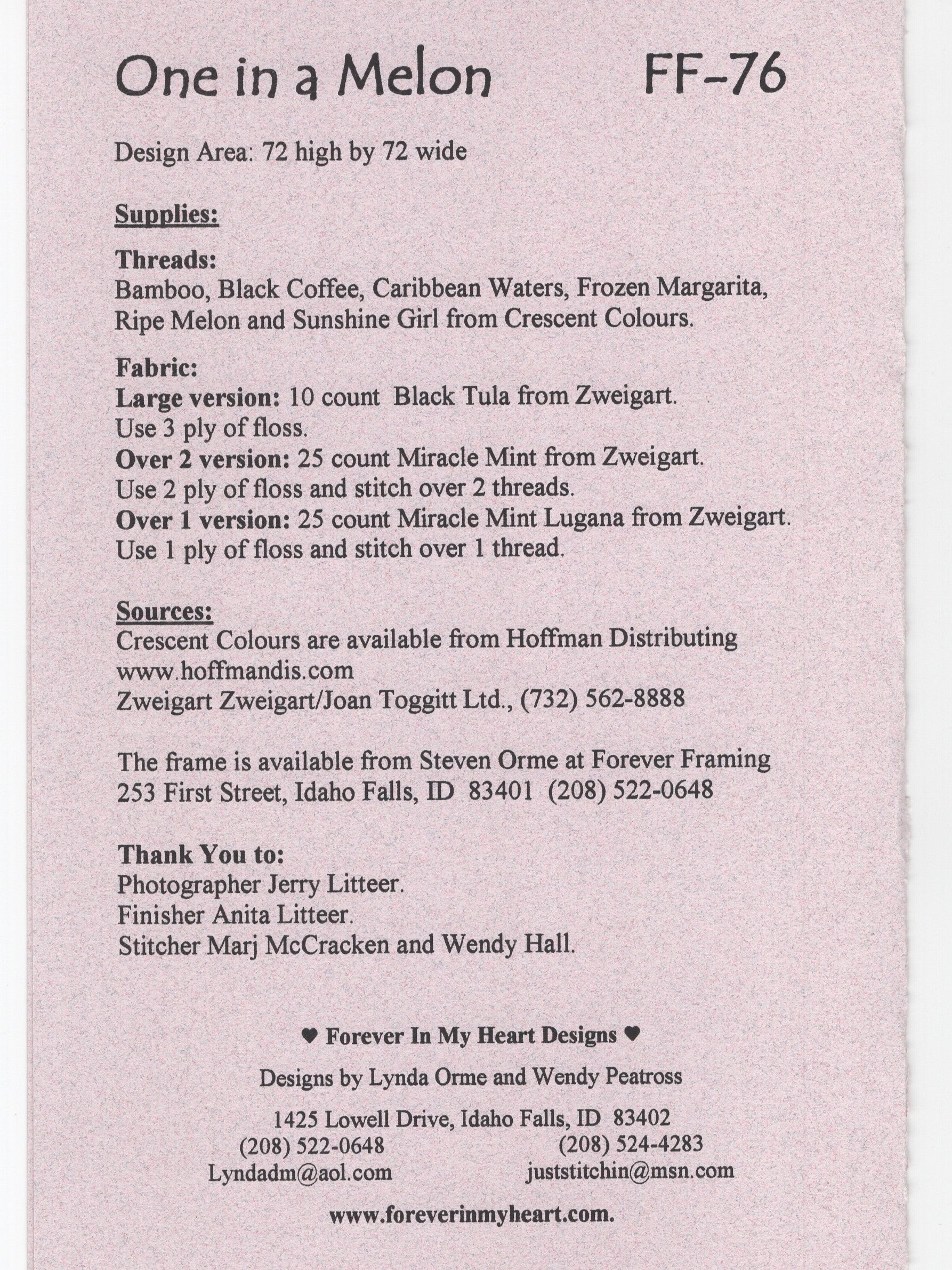 Forever In My Heart's One In a Melon was designed by Lynda Orme and Wendy Peatross.