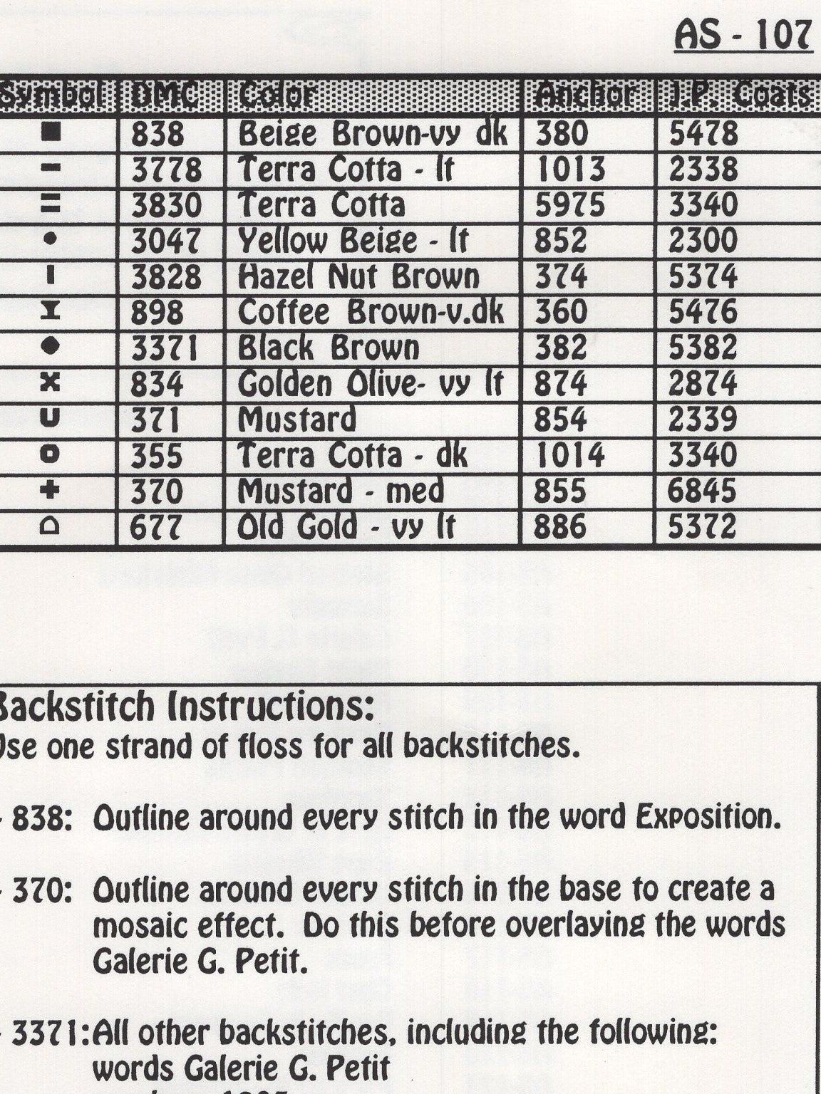 Art-Stitch's Galerie G Petit was designed by Karen Bourgaize.  The model was stitched on 14 count linen (2 strands over 2 threads).