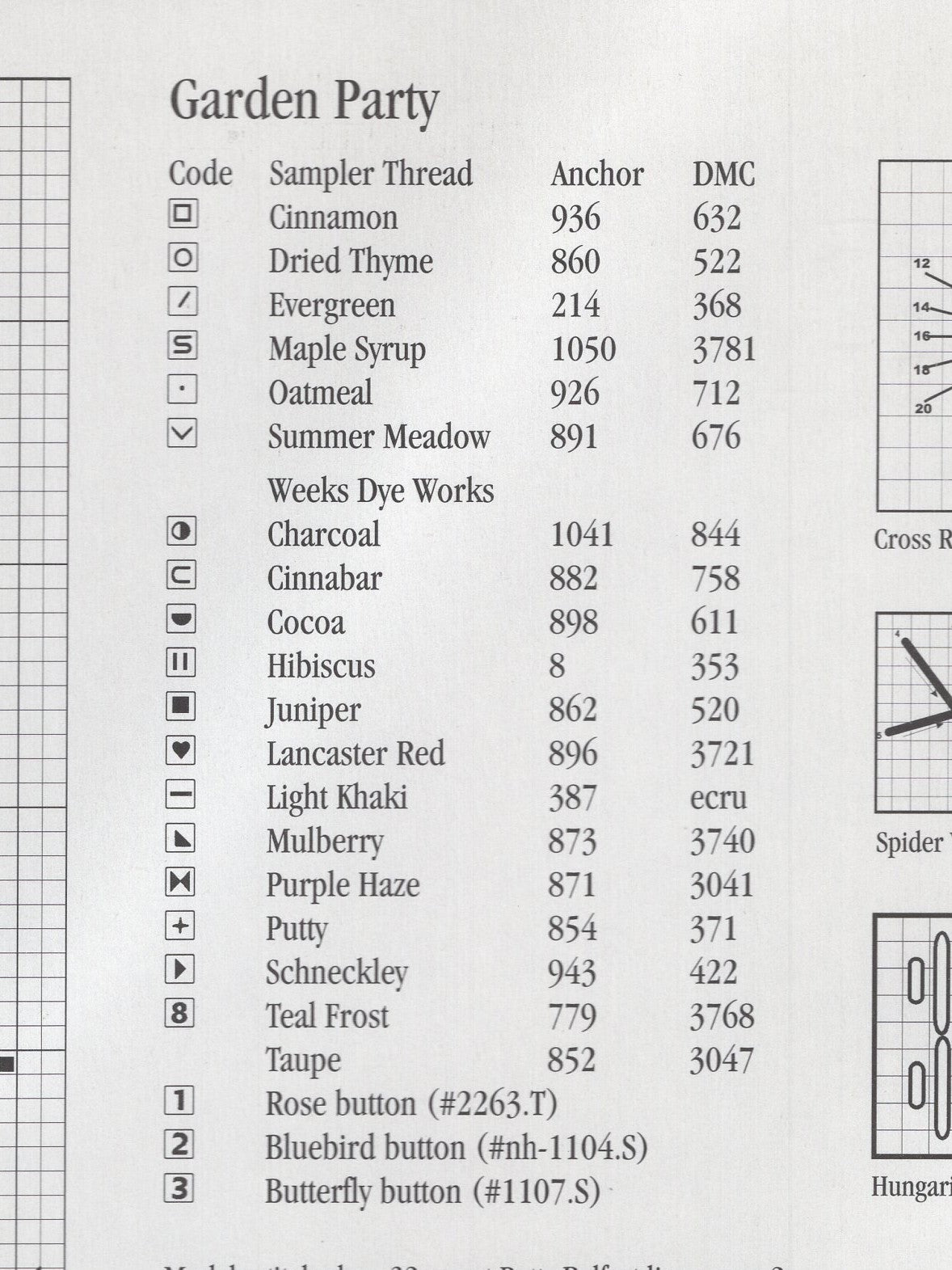 Heart In Hand Needleart's Garden Party was designed by Cecilia Turner.  The model was stitched on 32 count linen (2 strands over 2 threads).