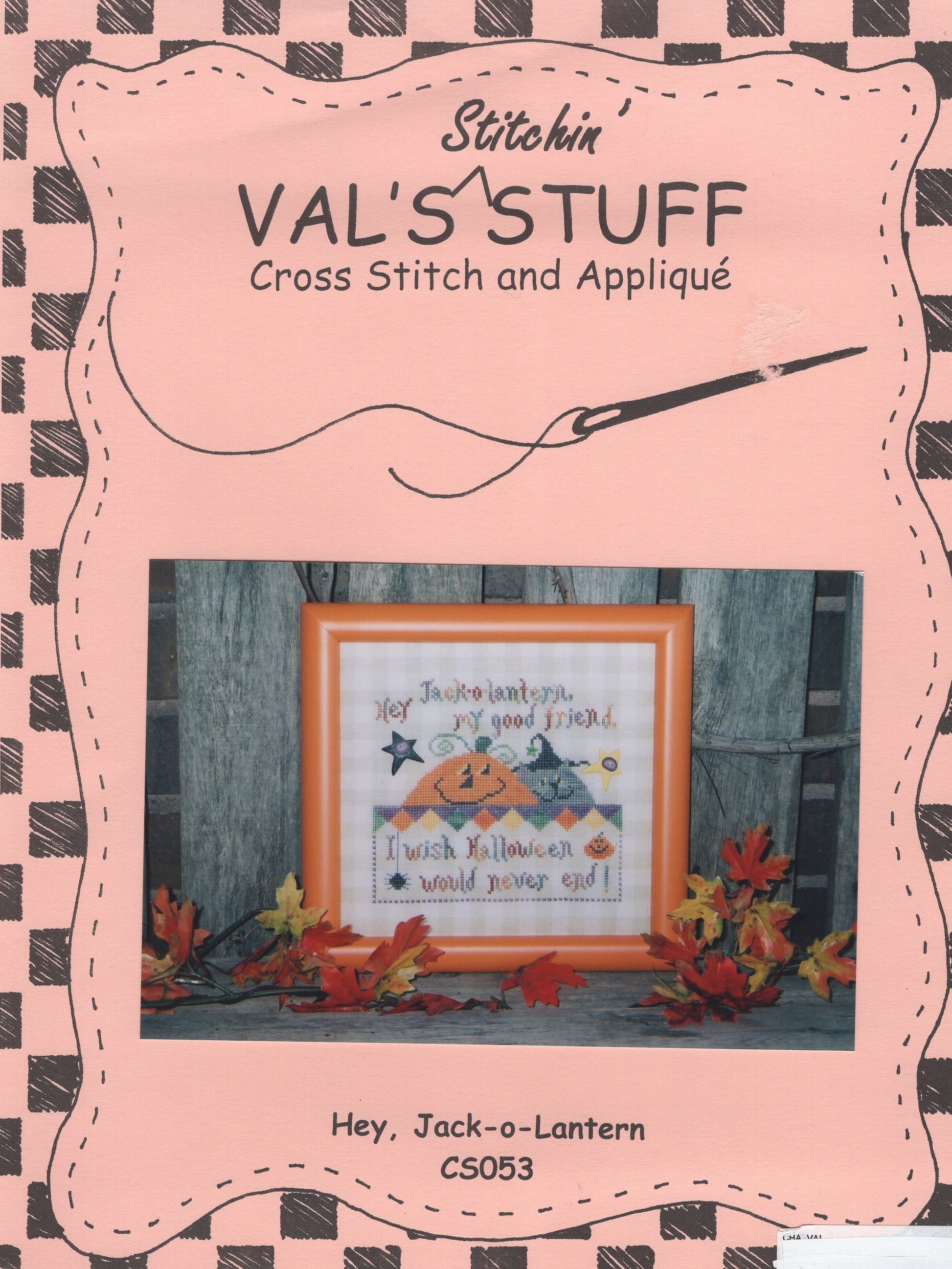 Val's Stitchin' Stuff's Hey, Jack-o-Lantern was designed by Valerie Danish. The model was stitched on 28 count gingham evenweave (2 strands over 2 threads).