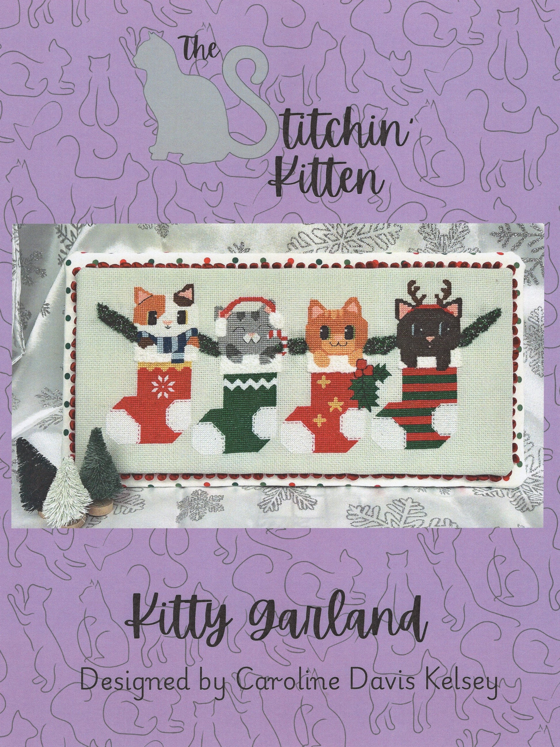 The Stitchin' Kitten Designs' pattern Kitty Garland was designed by Caroline Davis Kelsey.  The model was stitched on 16 count Aida (2 strands over 1 threads).