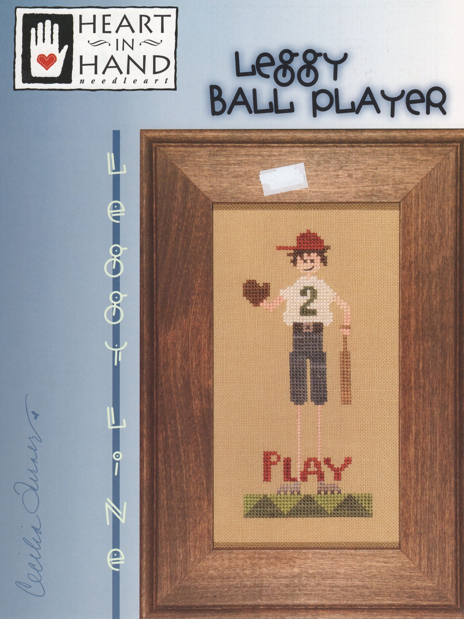 Heart In Hand Needleart's Leggy Ball Player was designed by Cecilia Turner.  The model was stitched on 32 count linen (2 strands over 2 threads).