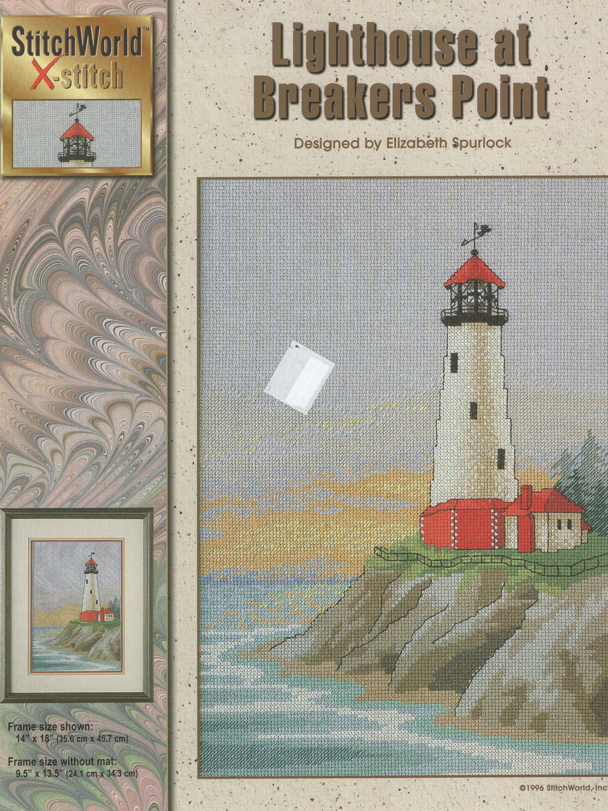 Stitch World’s Lighthouse at Breakers Point was designed by Elizabeth Spurlock.  The model was stitched on 14 count Aida (2 strands over 2 threads).
