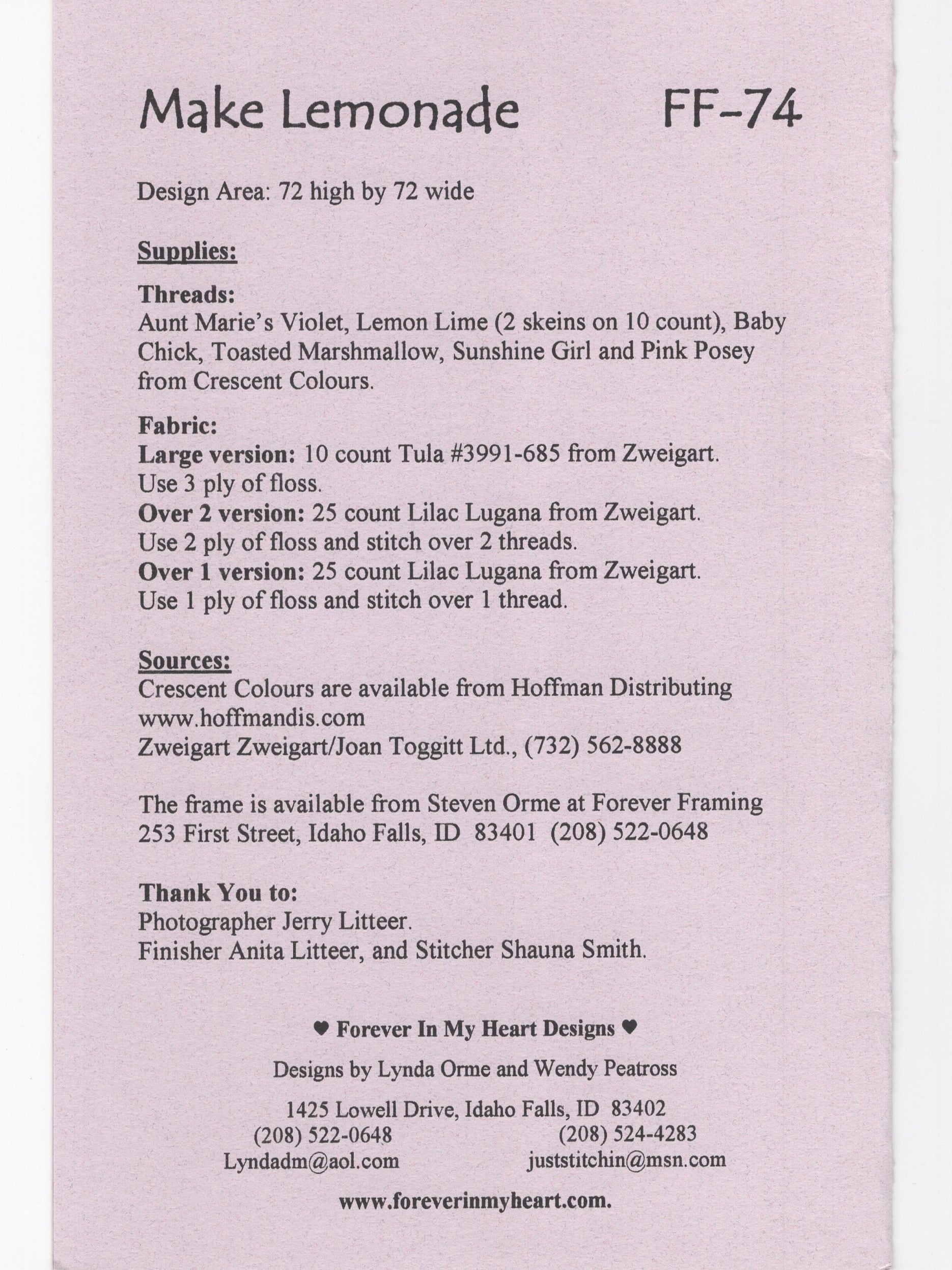 Forever In My Heart's Make Lemonade was designed by Lynda Orme and Wendy Peatross.