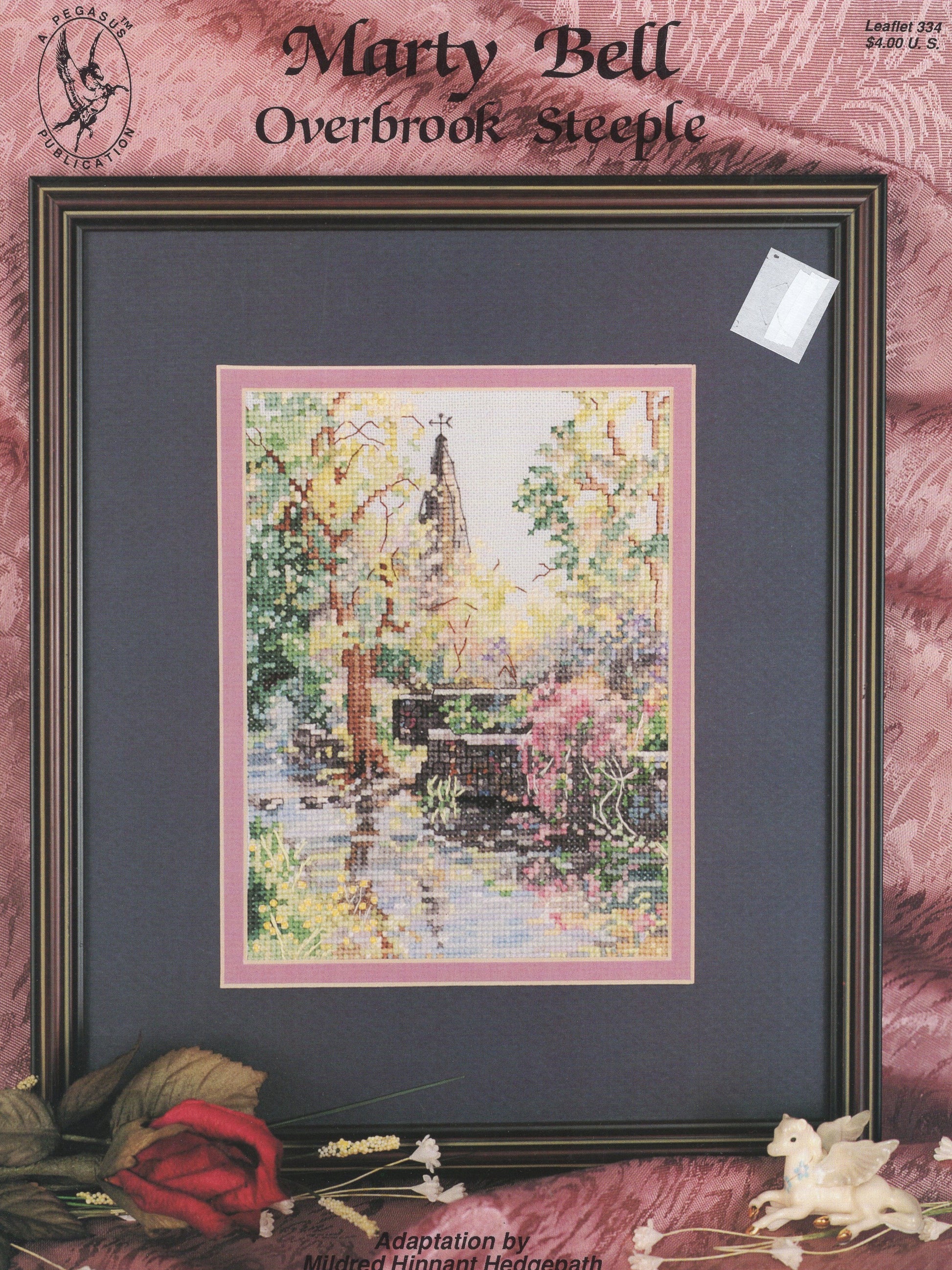 Pegasus Originals' version of Marty Bell's Overbrook Steeple was adapted to cross stitch by Mildred Hinnant Hedgepath.  The model was stitched on 28 count evenweave (3 strands over 2 threads).