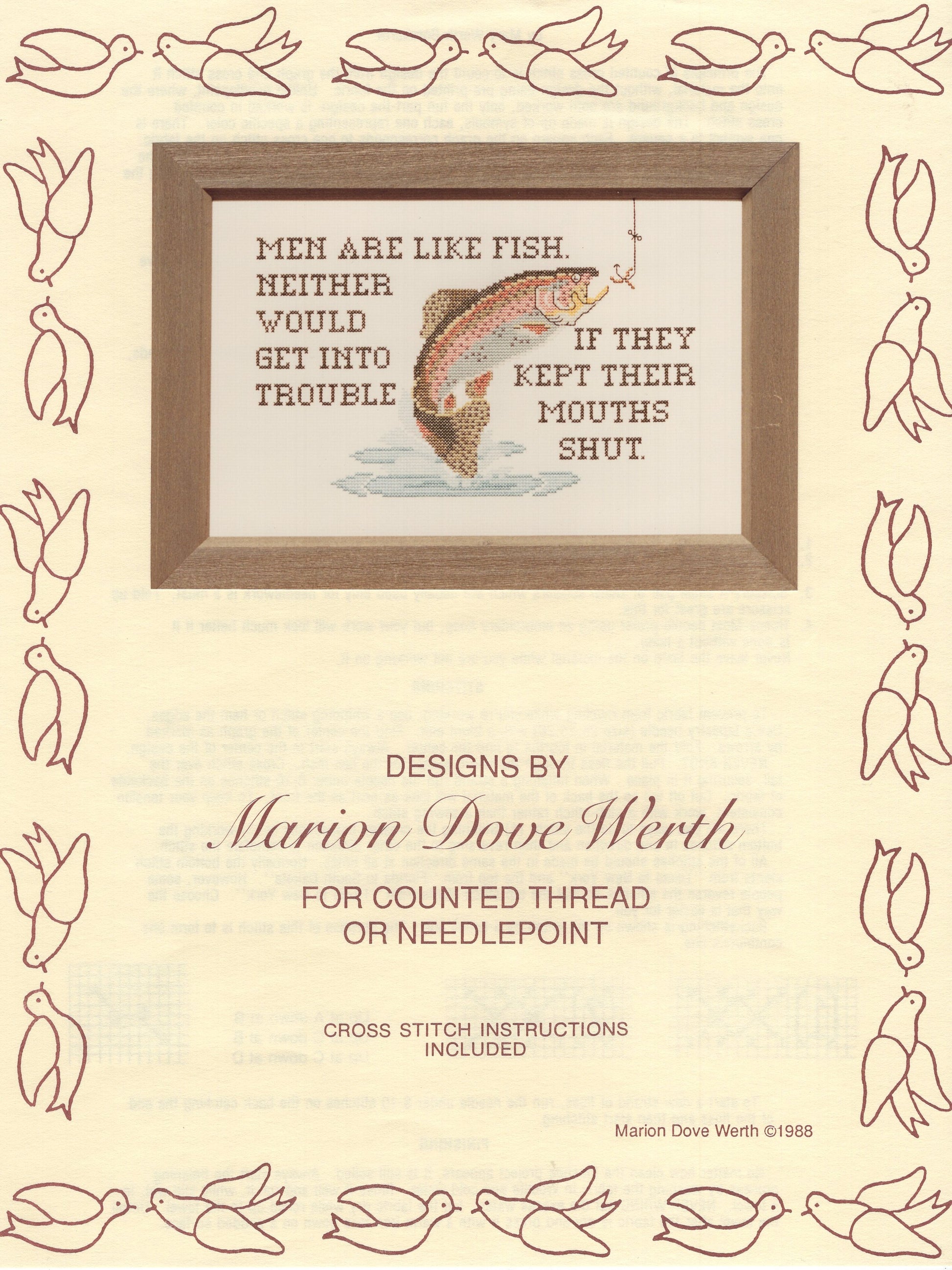 Marion Dove Werth's Men are Like fish have a stitch count of 145w X 85h