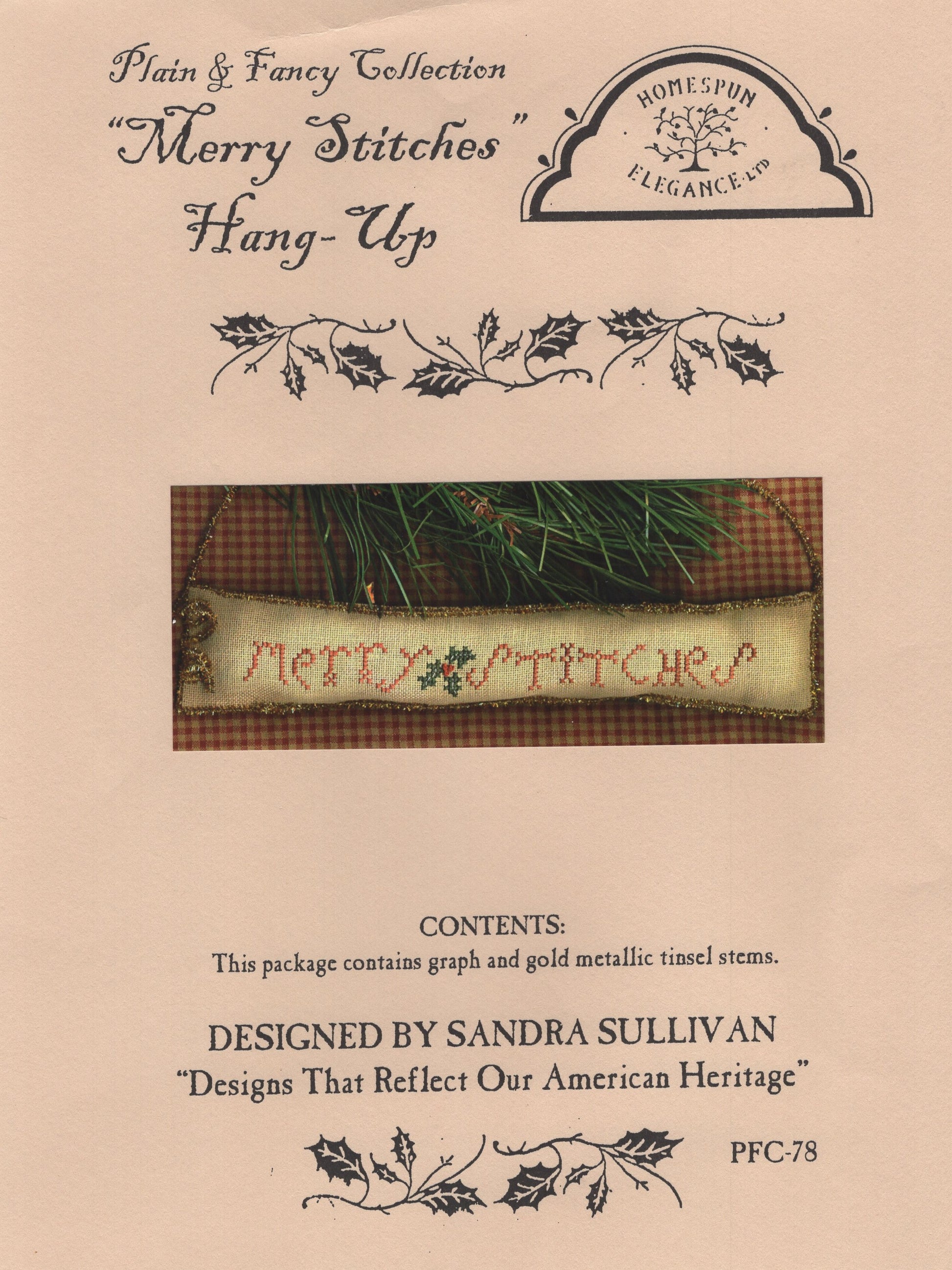 Homespun Elegance's Merry Stitches Hang up was designed by Sandra Sullivan.  The model was stitched on 28 count linen (2 strands over 2 threads).
