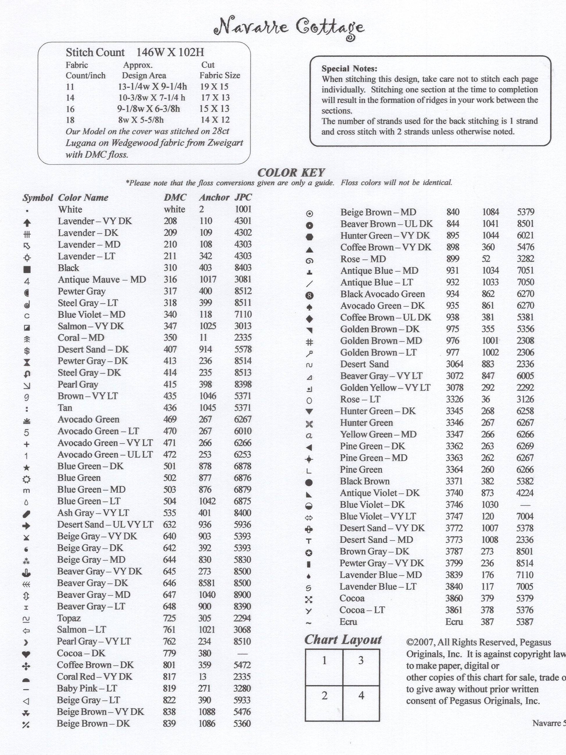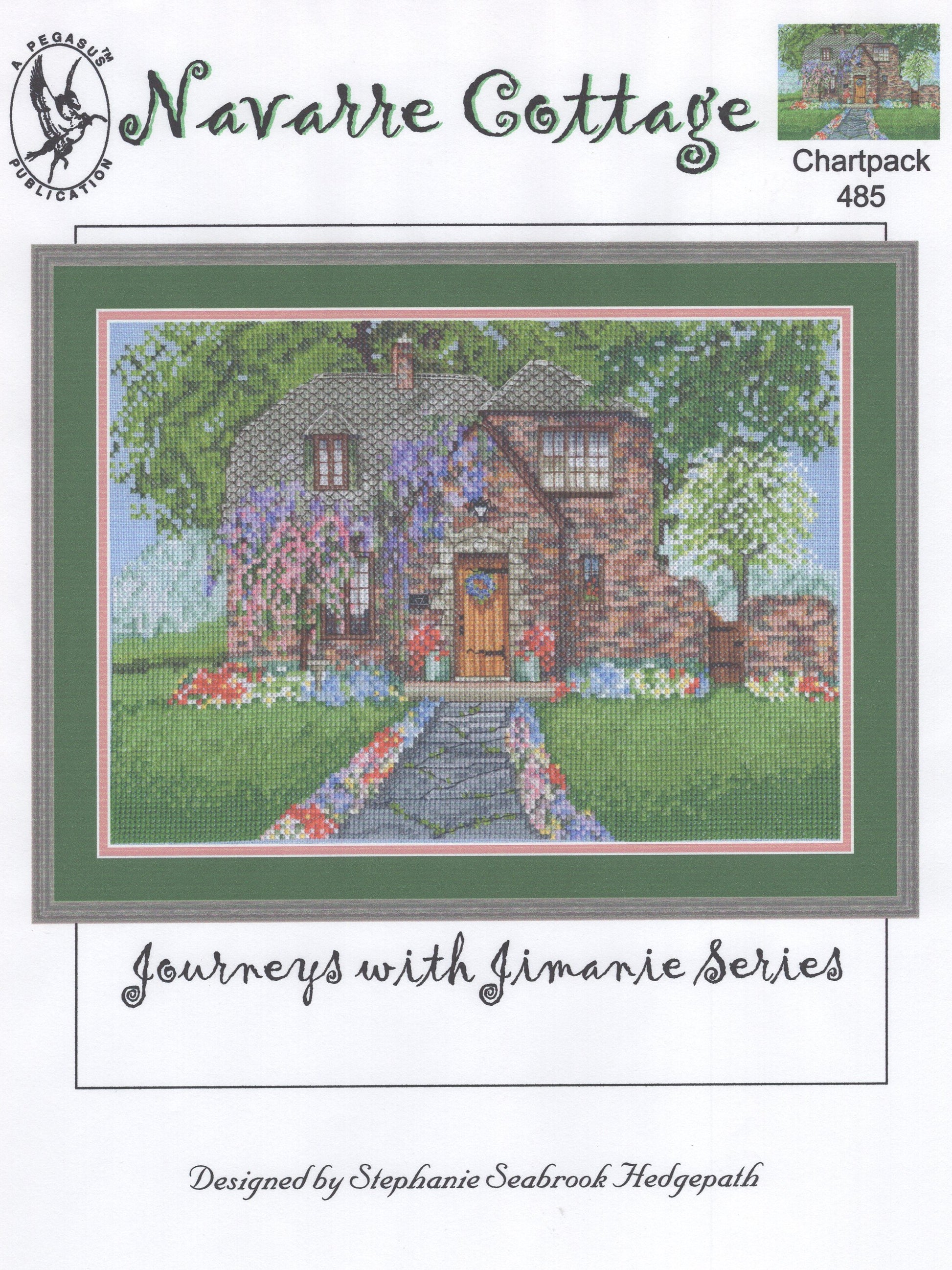 Pegasus Originals' Journeys with Jimanie Series, Navarre Cottage was designed by Stephanie Seabrook Hedgepath.  The model was stitched on 28 count evenweave (3 strands over 2 threads).