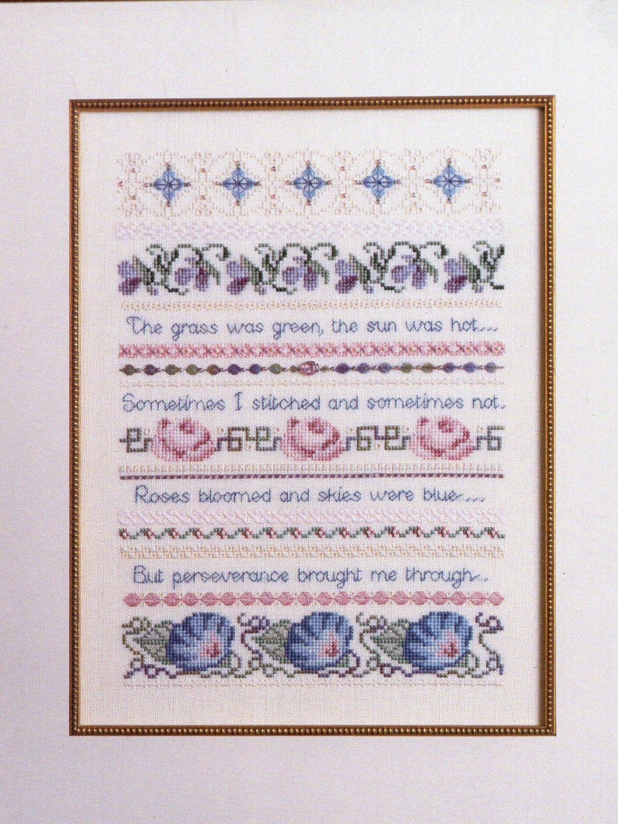 The model for Just Nan's, Perseverance was stitched on 32 count linen (2 threads over 2 strands).