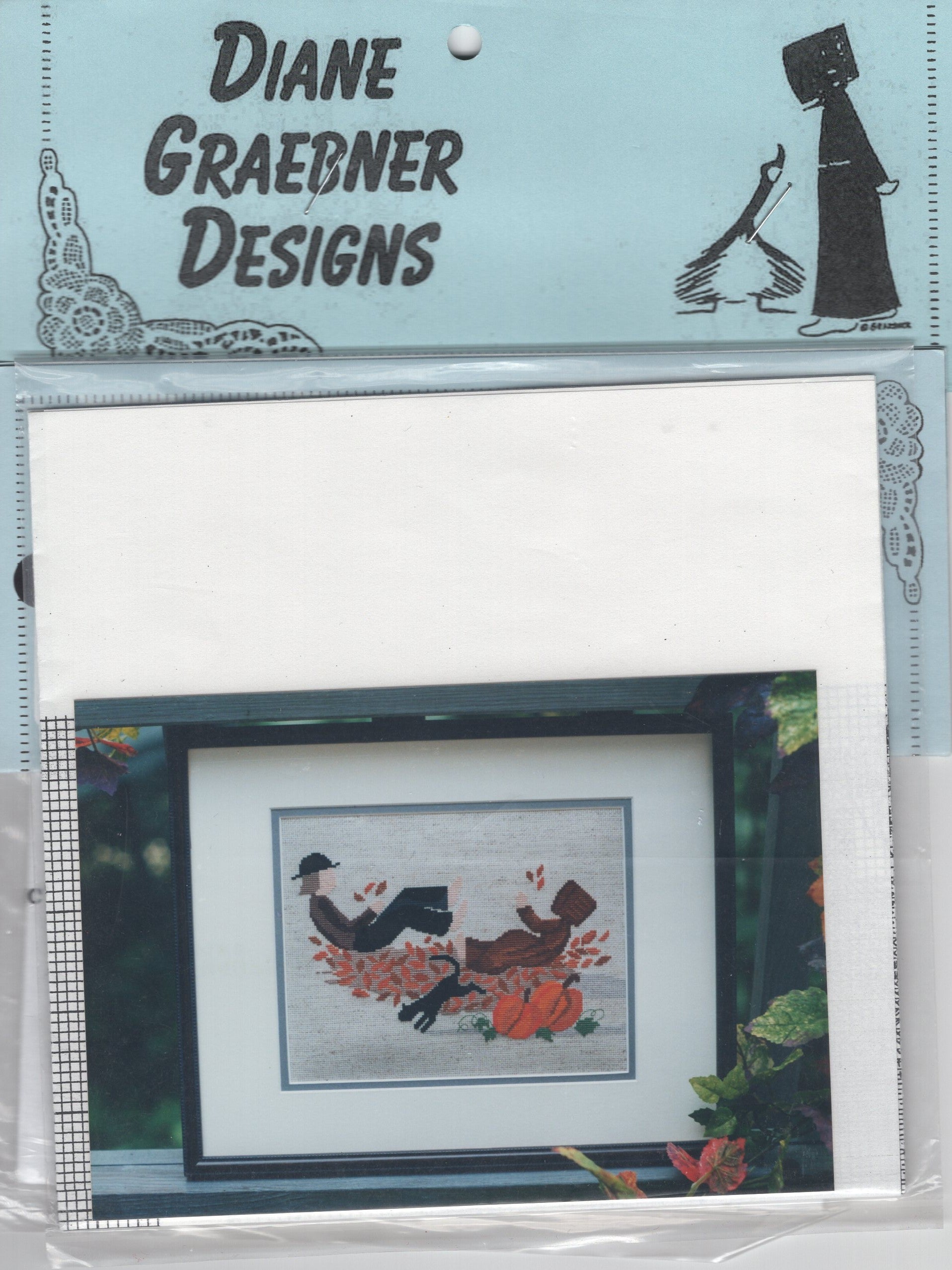 Diane Graebner Designs’ Playin' In The Leaf Pile was designed by Diane Graebner.  The listed recommendation for fabric is 18 count Rustico (Zweigart) Aida.