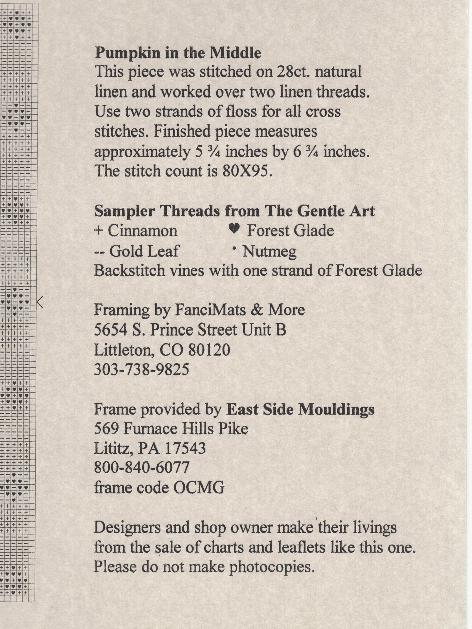 The model for Joy of the needle's Pumpkin in the Middle was was stitched on 28 count linen (2 strands over 2 threads).