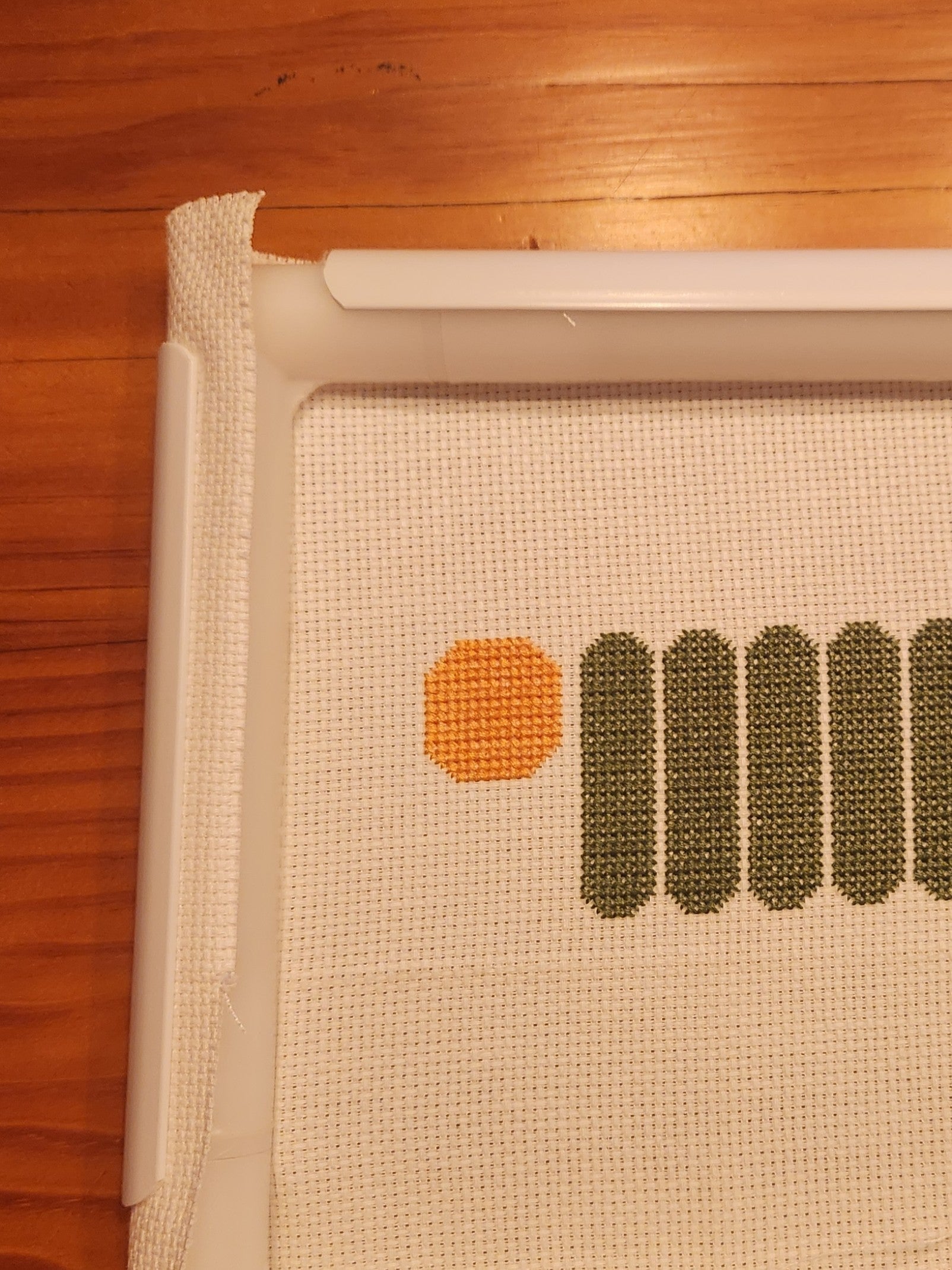 Q-Snap frames are a great method to hold fabric tight while stitching in place of traditional hoops. These work well with Aida, evenweave and linen.