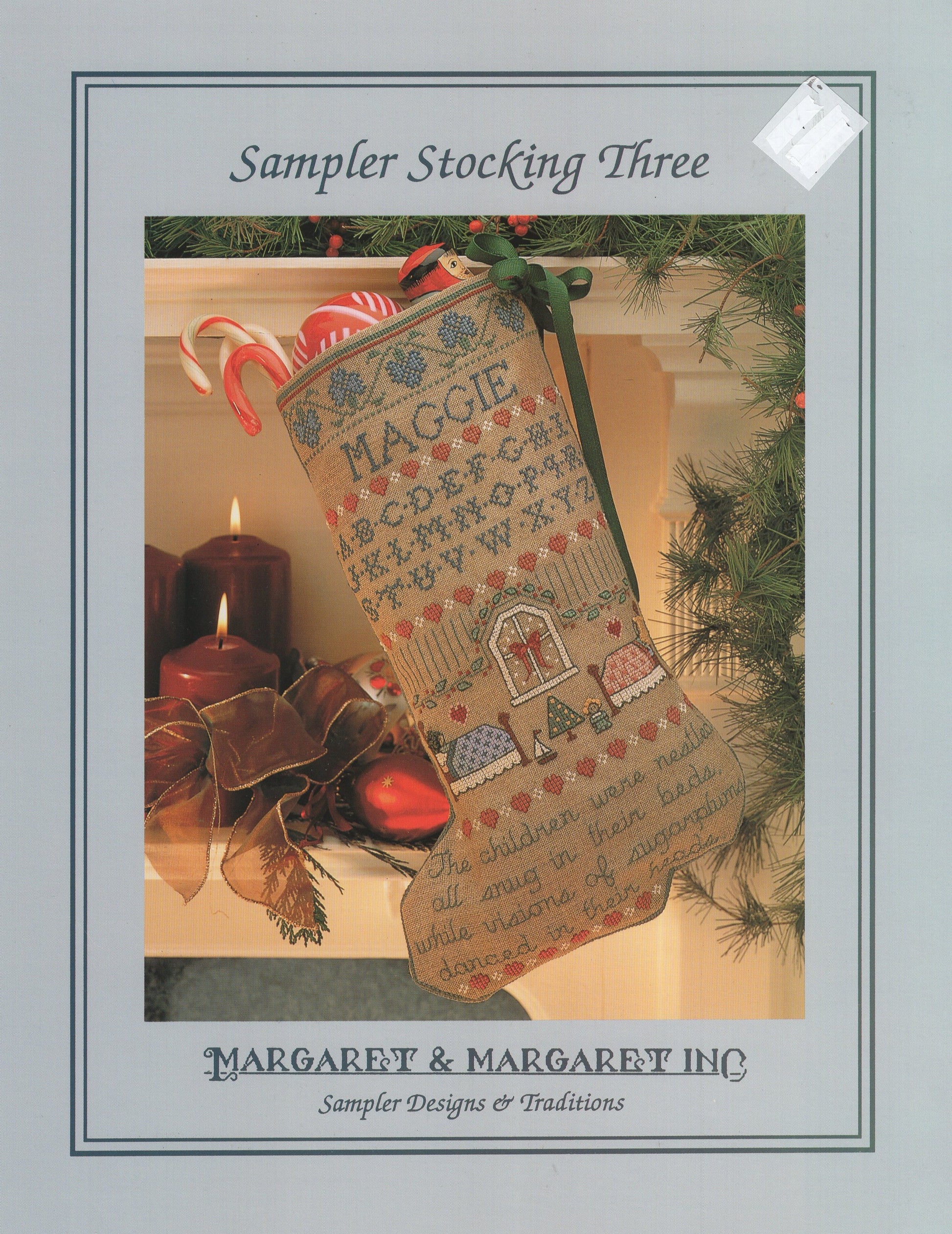 Margaret & Margaret Sampler Designs & Traditions' Sampler Stocking Three was designed by Margaret McKee Huey.  The model was stitched on 25 count linen (2 strands over 2 threads).  It was part of their "T'was The Night Before Christmas" Series.