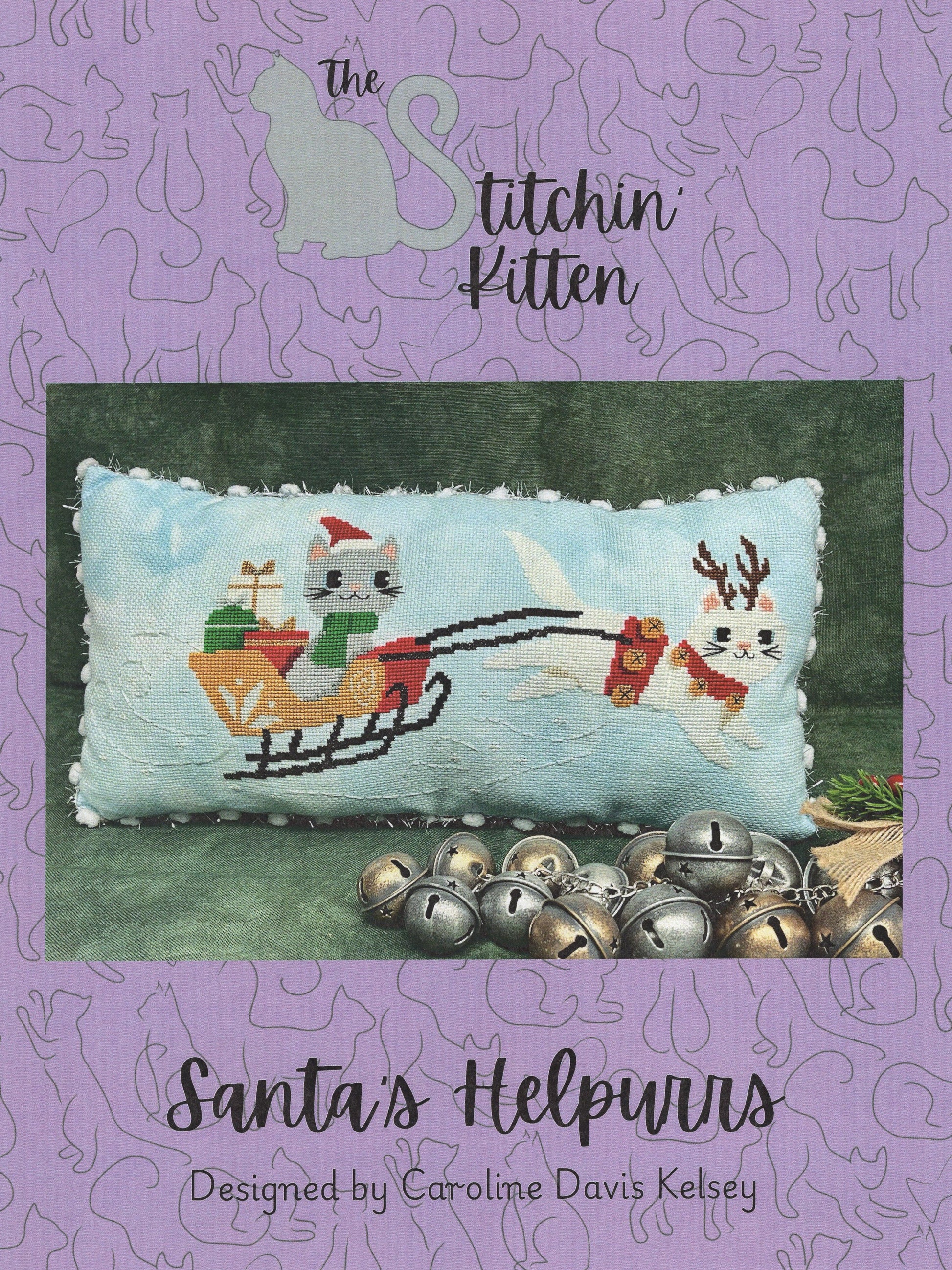 The Stitchin' Kitten Designs' pattern Santa's Helpurrs was designed by Caroline Davis Kelsey.  The model was stitched on 32 count linen (2 strands over 2 threads).