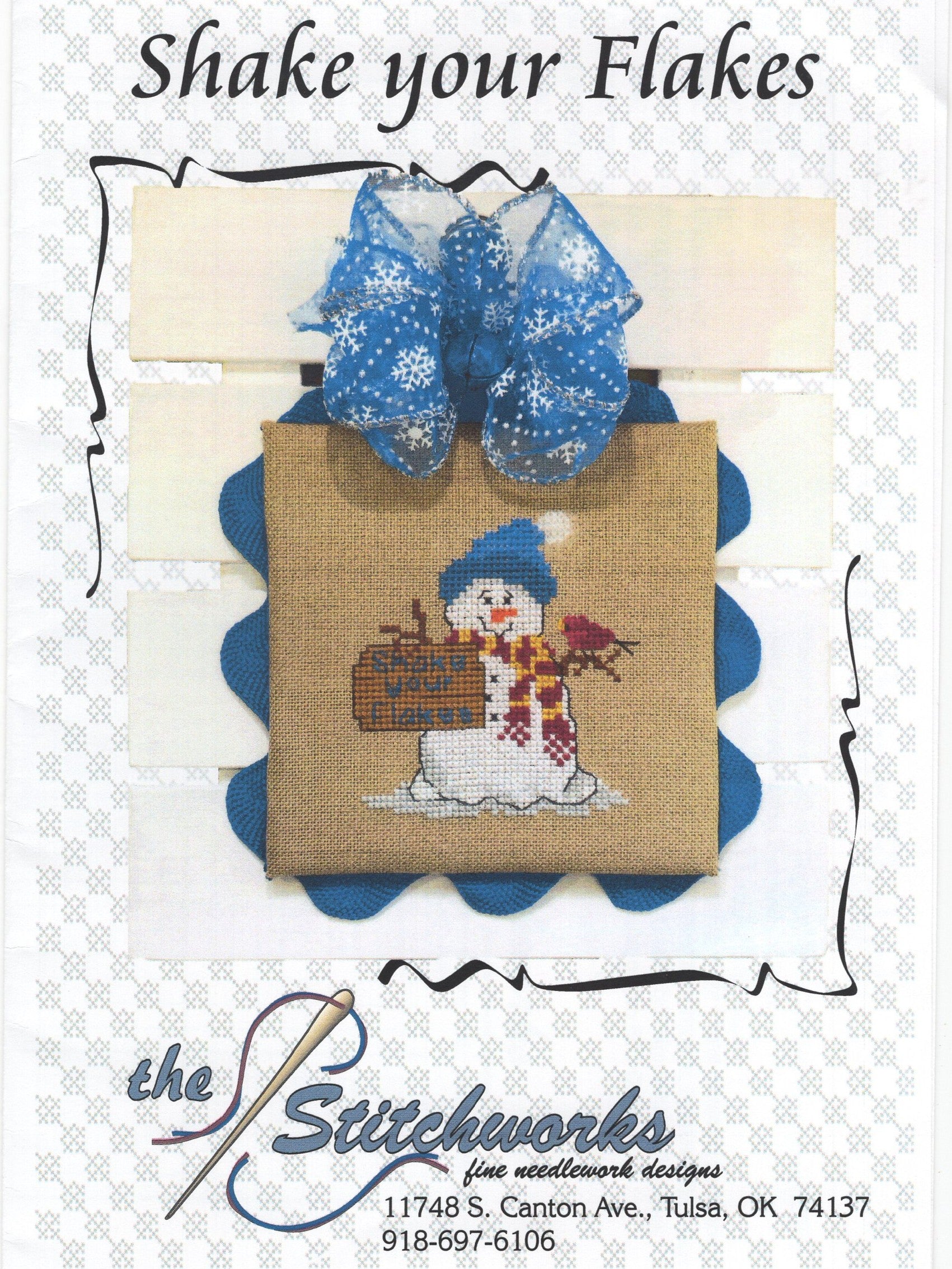 The Stitchworks' Shake your Flakes was designed by Cindy and David Valentine.  The model was stitched on 28 count evenweave (2 strands over 2 threads).