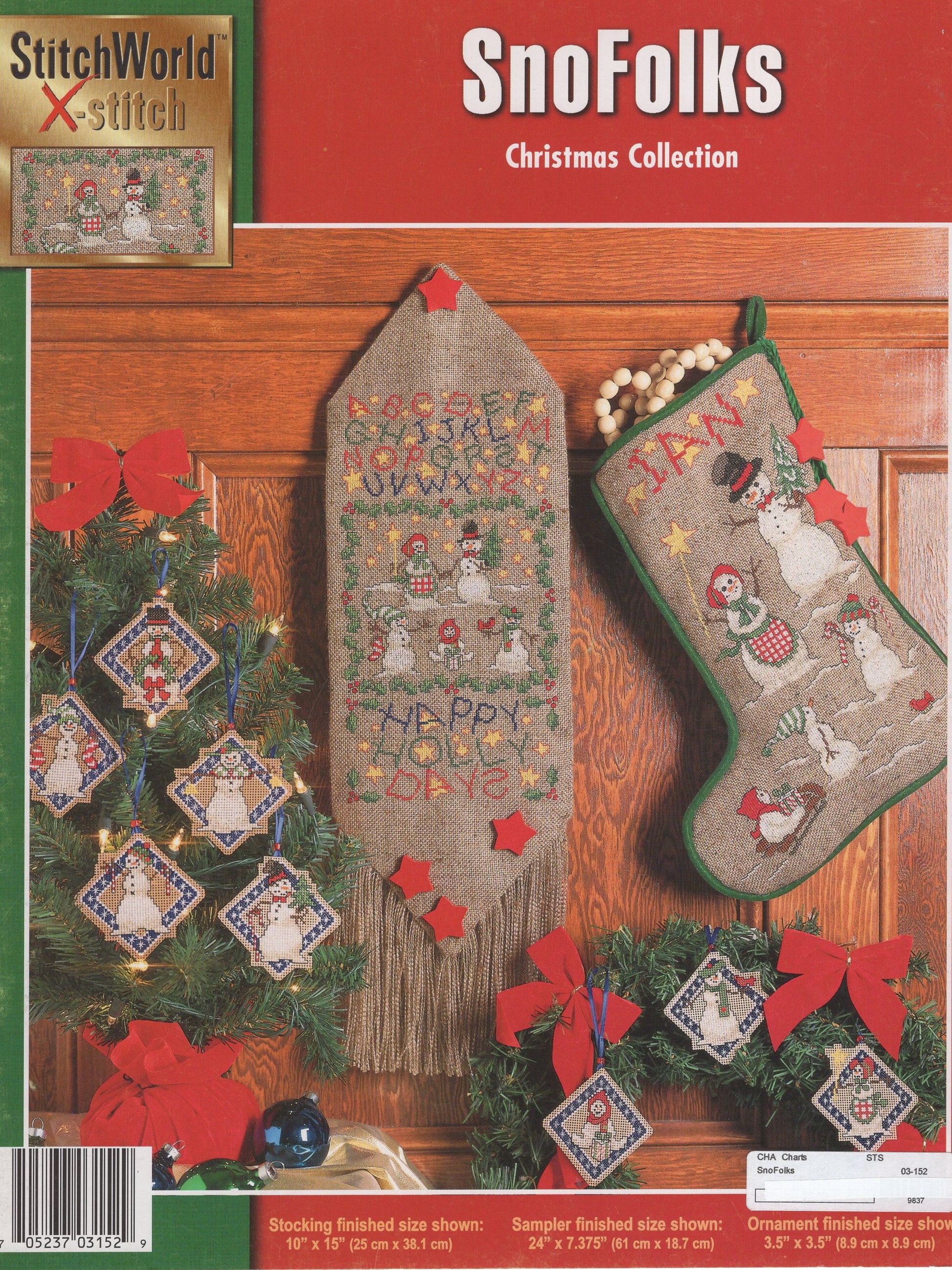 The models for Stitch World’s SnoFolks was stitched on 14 count Aida (2 strands over 2 threads).  This leaflet contains 2 larger designs as well as 8 ornaments.