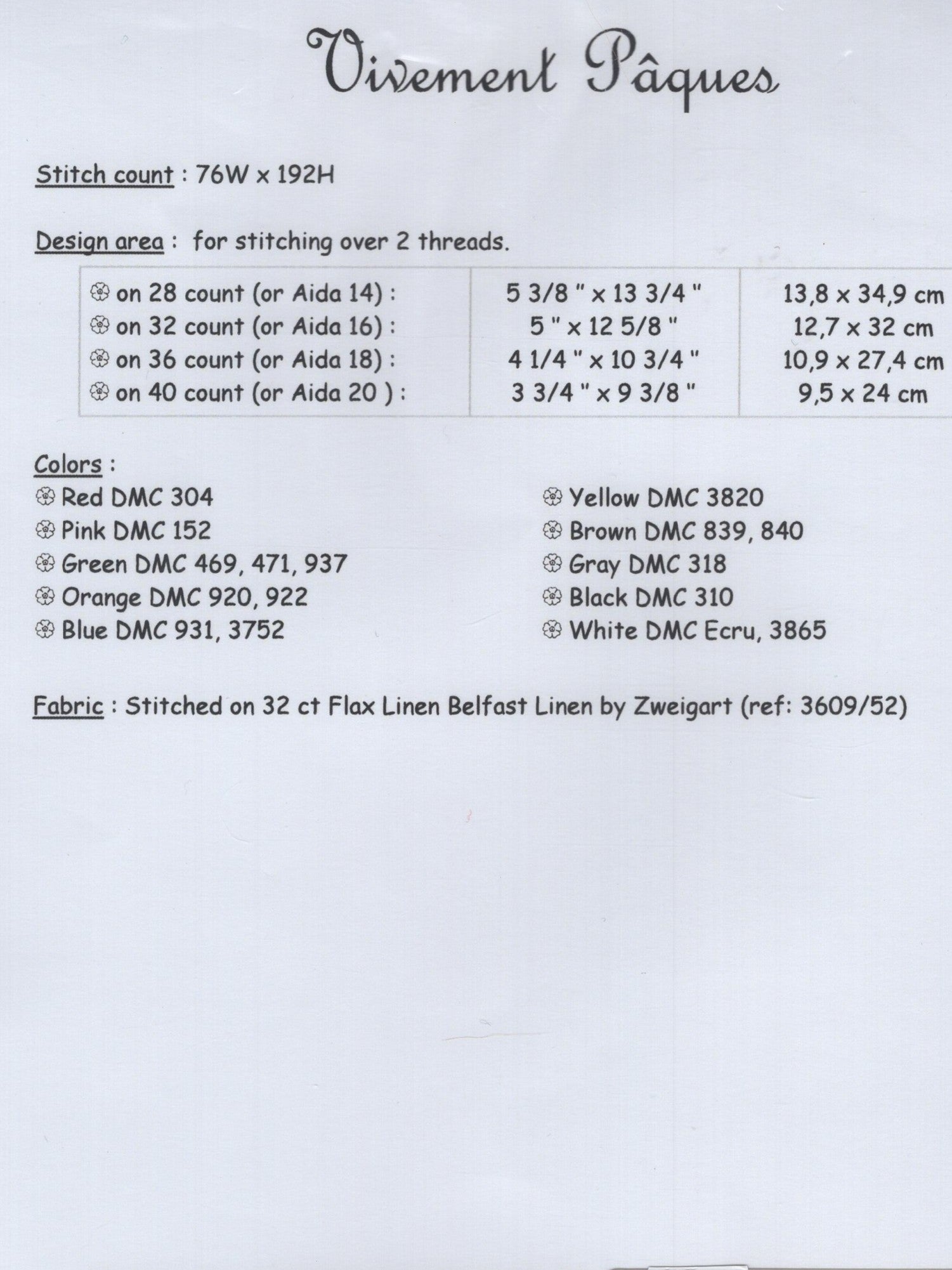 Jardin Prive's, Vivement Paques was designed by Nathalie Cichon.  The model was stitched on 32 count linen (2 strands over 2 threads).