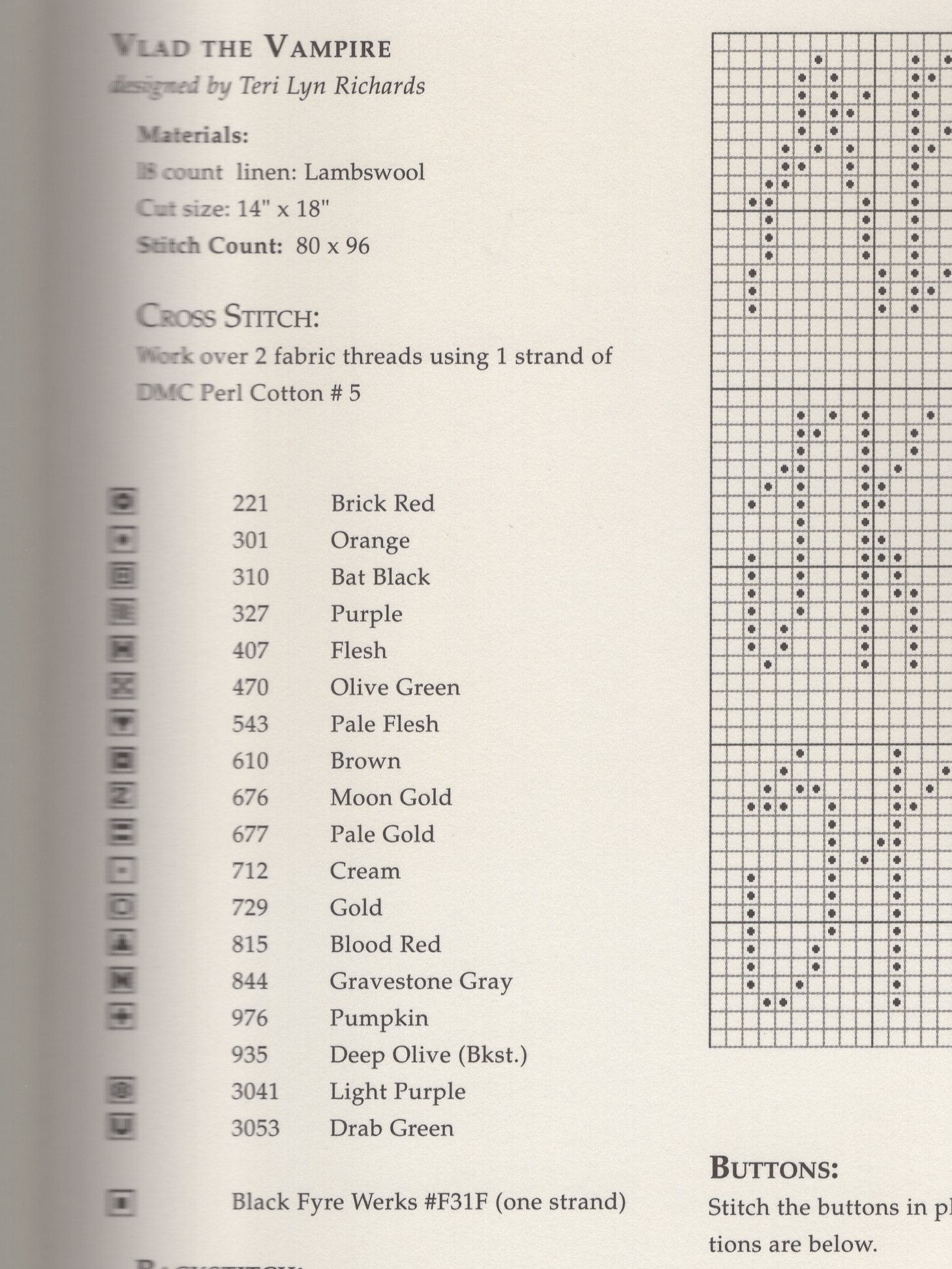 Shepherd's Bush's Vlad The Vampire was designed by Teri Lyn Richards.  The model was stitched on 18 count linen (2 strands over 2 threads).