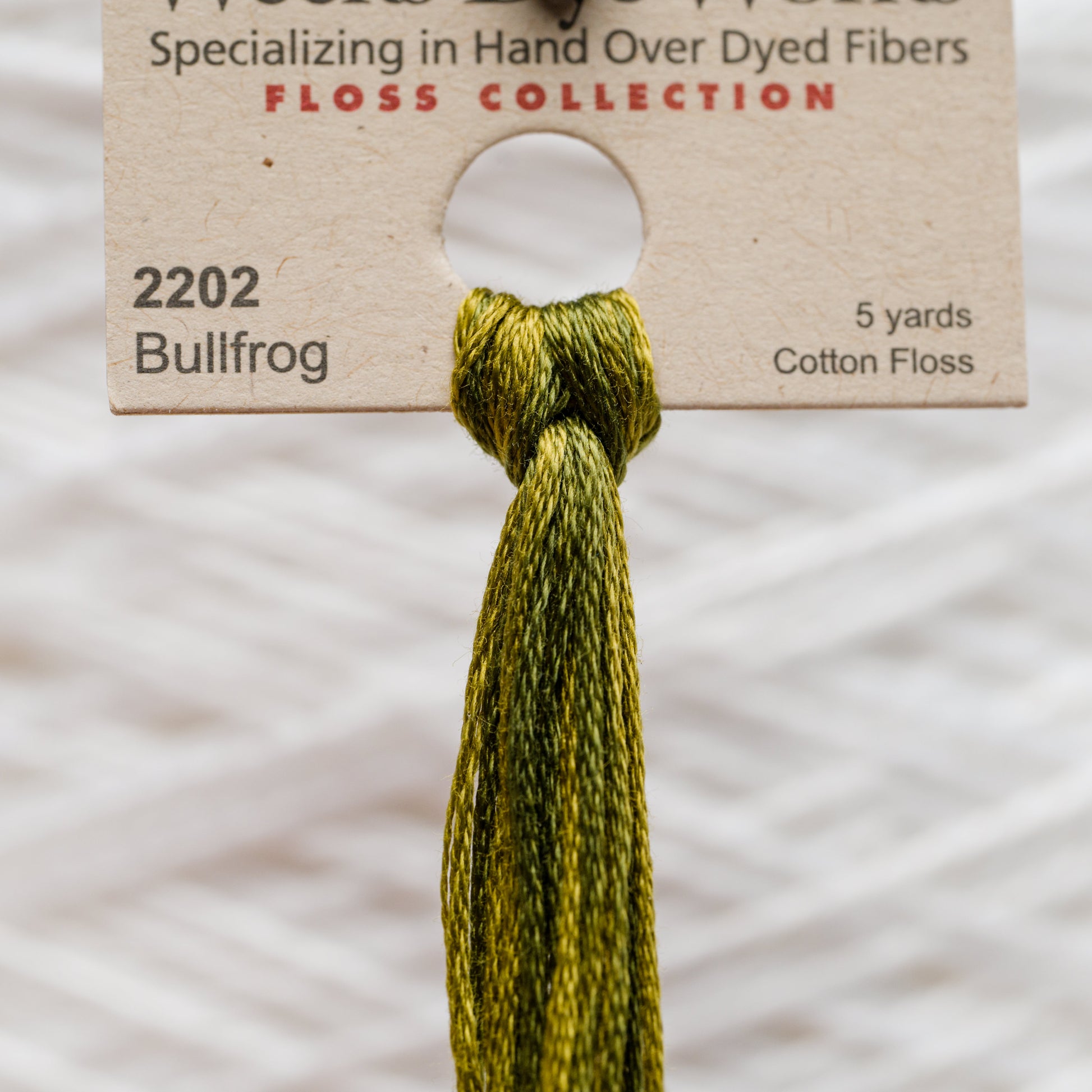 Weeks Dye Works six strand embroidery floss is sold in continuous, 5-yard skeins.