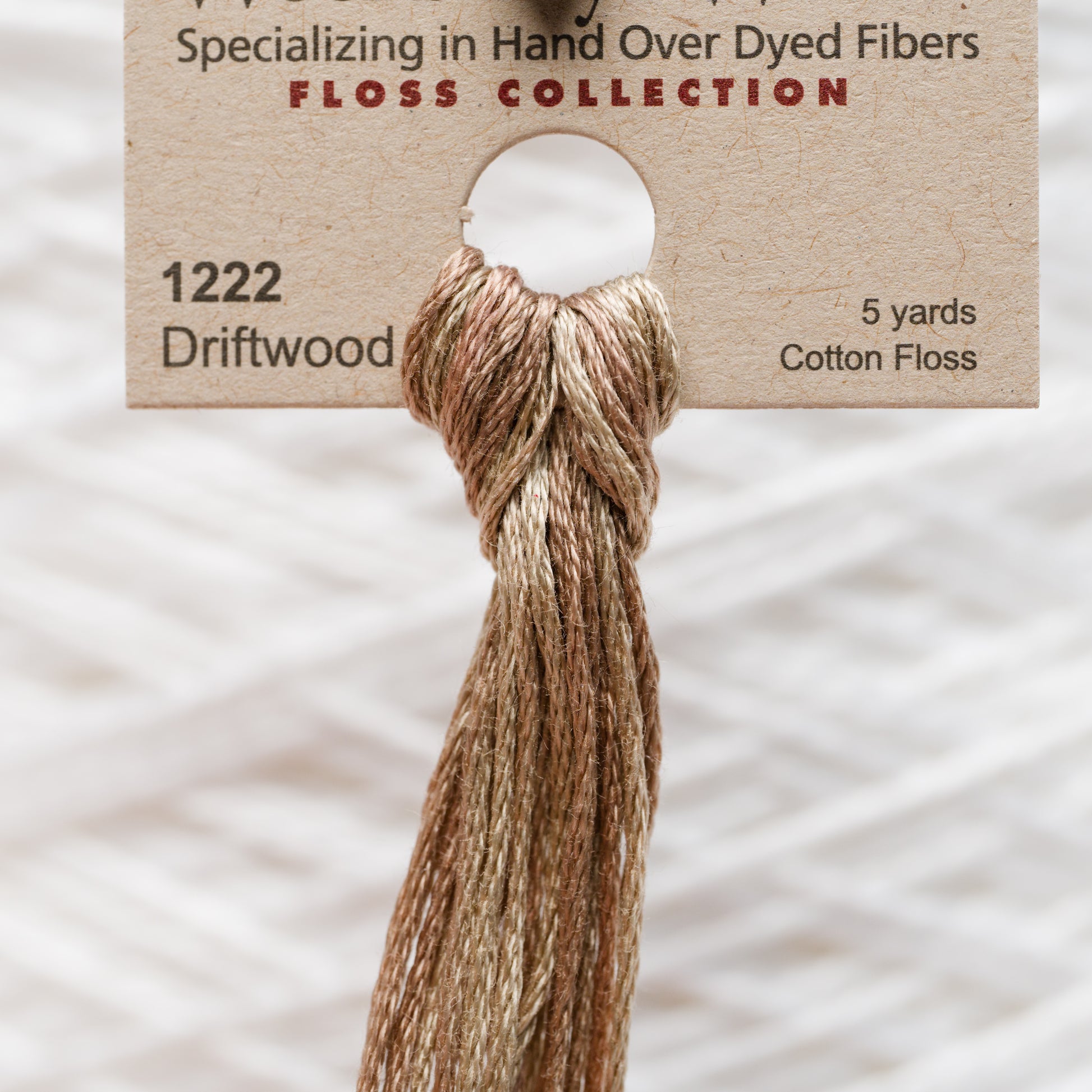 Weeks Dye Works six strand embroidery floss is sold in continuous, 5-yard skeins.