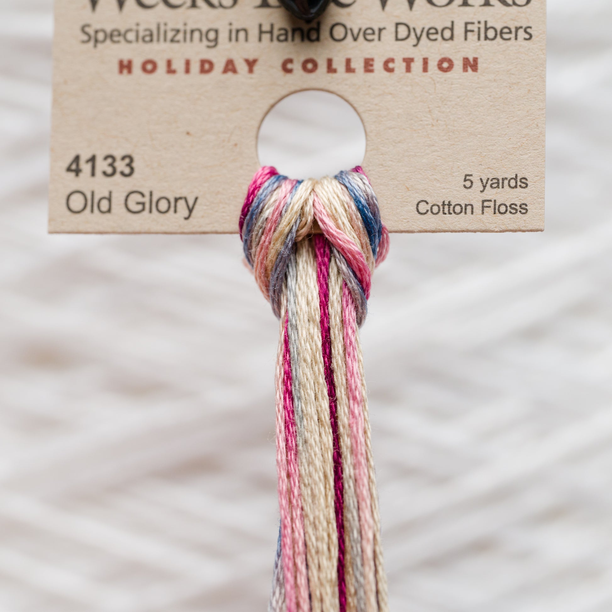 Weeks Dye Works six strand embroidery floss is sold in continuous, 5-yard skeins.