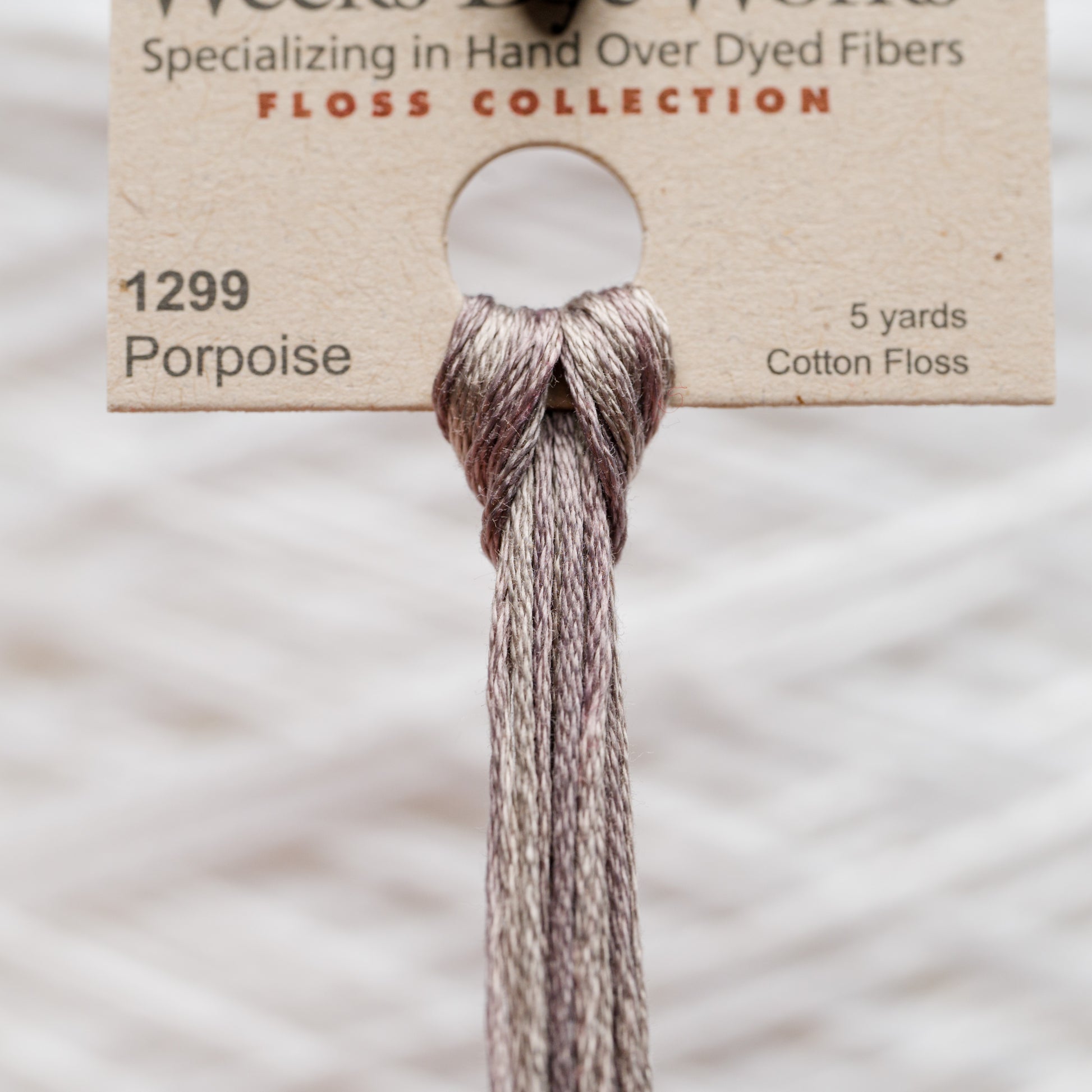 Weeks Dye Works six strand embroidery floss is sold in continuous, 5-yard skeins.